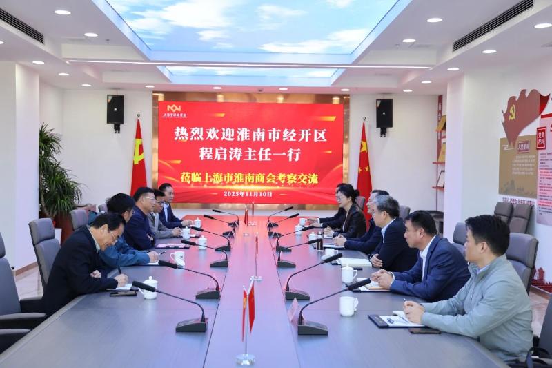 11月10日上午,经开区党工委书记、管委会主任程启涛率队赴上海市淮南商会考察交流,市驻沪联络处副主任胡净,党工委委员、管委会副主任姚多智等陪同。上海市淮南商会会长李桂好、执行会长王长胜等热情接待,双方通过实地参观、座谈交流,就深化合作、资源互补达成共识。