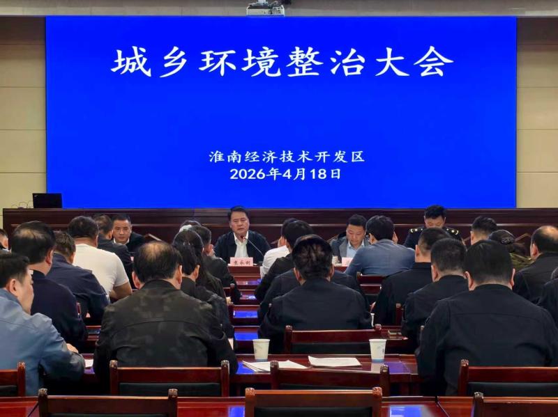 为落实上级环境整治部署,压实工作责任、补齐治理短板,4月18日下午,经开区召开城乡环境整治大会,部署重点工作。党工委委员、管委会副主任苏永利出席并作总结讲话,城管大队、社会发展局、建设发展局、经济发展局、商务科技局、市场监督管理分局、生态环境分局、自然资源和规划分局、财政局、淮南农场等相关单位负责人以及村、社区、物业、企业、酒店、商超、学校、医院代表参会。